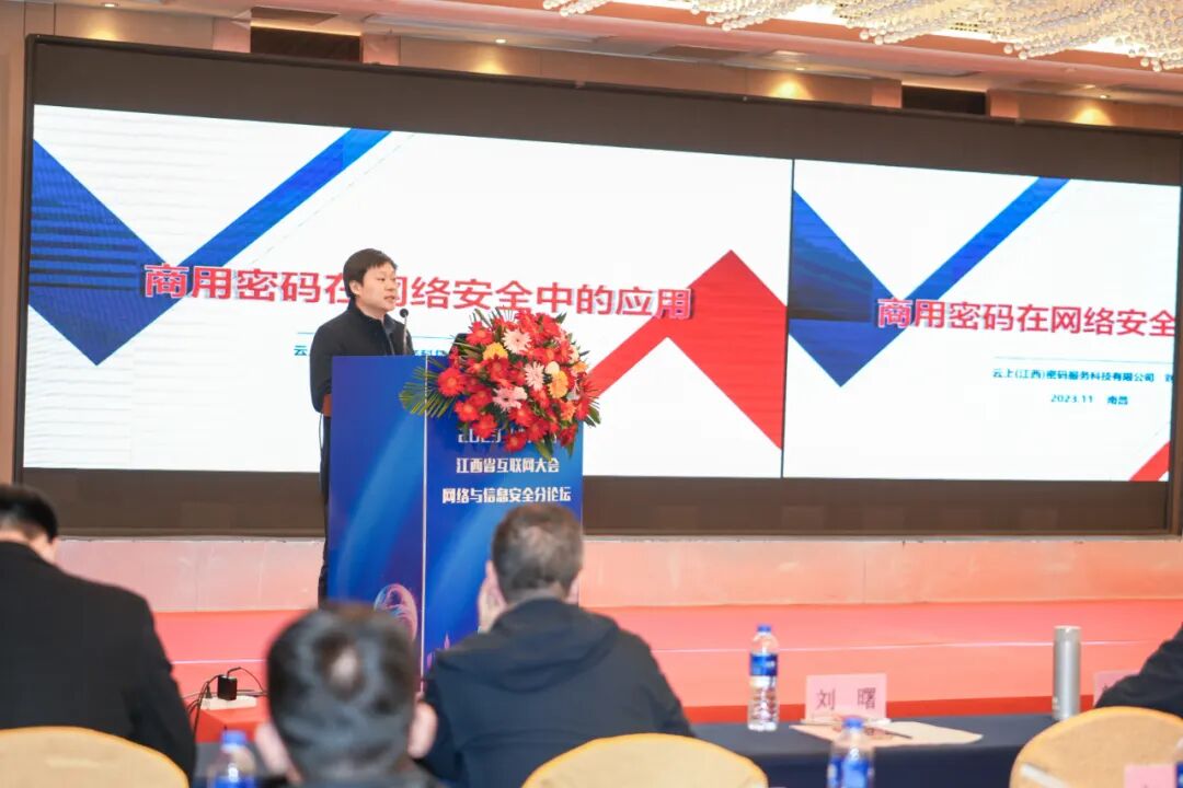 云上(江西)密码服务科技有限公司副总经理刘曙受邀参加本次分论坛,并以“商用密码在网络安全中的应用”为题作主旨演讲。
